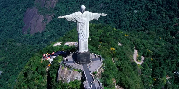 Christ the Redeemer stands atop Corcovado Mountain in Rio de Janeiro, Brazil. Completed in 1931, this massive statue represents peace and is one of the New Seven Wonders.