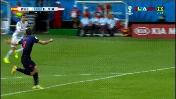 Gravity-Defying Goal: While most players would try to control the ball with their feet, Van Persie spotted the goalkeeper off his line and chose to launch himself into the air. He traveled nearly 17 feet through the air before making contact with the ball.
