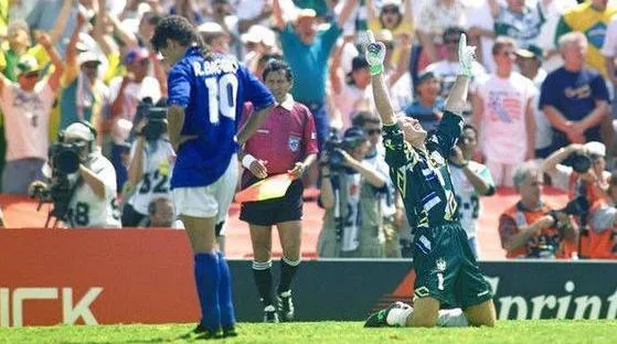 1994 World Cup Final | Italy vs. Brazil. With the game tied 0-0 after 120 minutes, the match entered a brutal penalty shootout. Roberto Baggio, Italy's fifth player, unfortunately missed the ball, leaving the heartbroken Baggio to watch Brazil's wild celebrations.