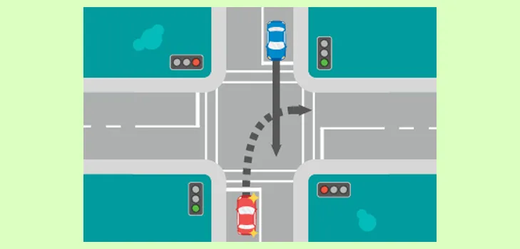 When turning right, you must yield to oncoming traffic.