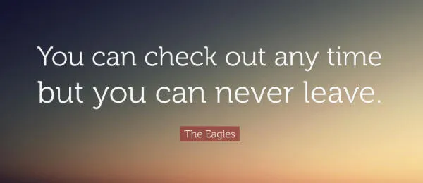 6. Which song by The Eagles features the line 'You can check out any time you like, but you can never leave'?