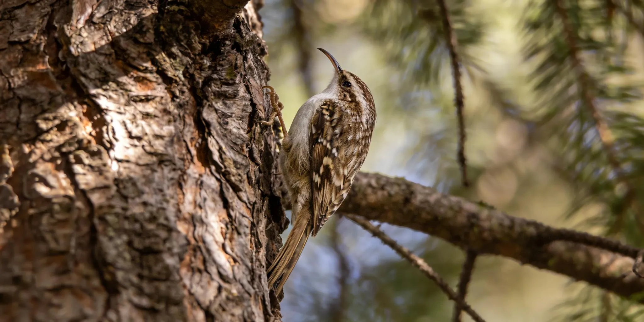 The Brown Creeper blends in perfectly with tree bark. It always starts at the bottom of a tree and works its way up in a spiral before flying to the base of the next tree.
