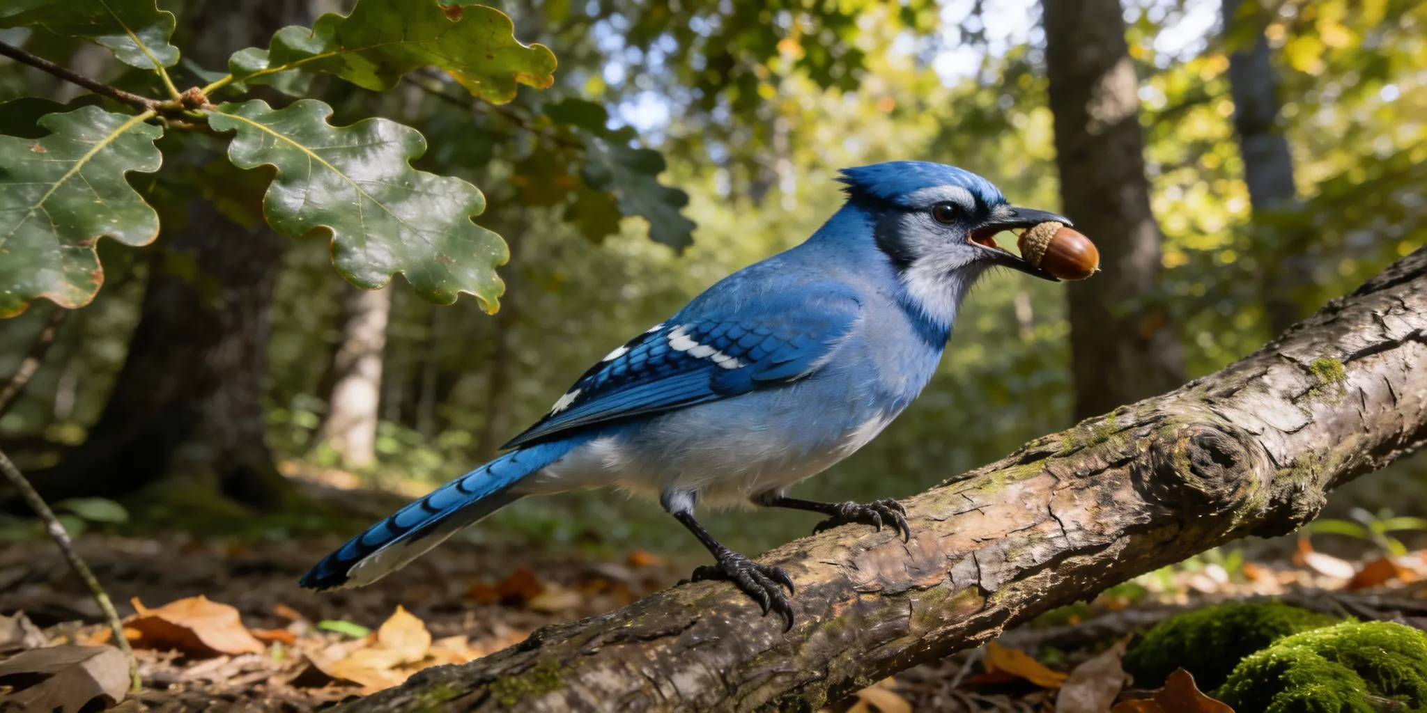 Blue Jays are highly intelligent members of the crow family. They play a vital role in the ecosystem by "planting" trees when they forget where they buried their acorns.