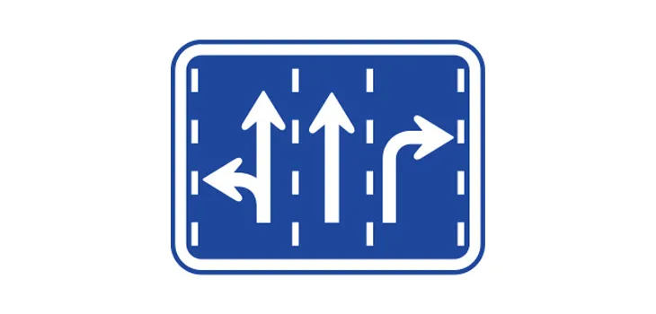 この標識は「進行方向別通行区分」を示し、交差点で進行する方向別の通行区分を示します。
