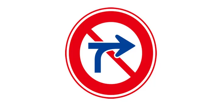10. これは「右折禁止」の標識であって、道路の右側にある車庫に入るために横断するのはよい。