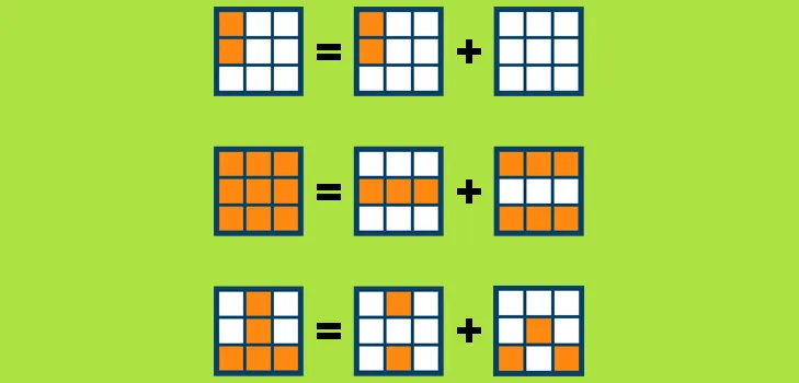왼쪽 정사각형은 가운데 정사각형과 오른쪽 정사각형의 합과 같습니다.