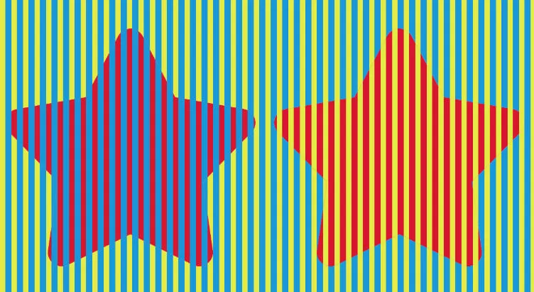 Oba pentagramy są czerwone, więc podsumujmy: Kolory sąsiadujące ze sobą mogą zakłócać nasz osąd – zjawisko to znane jest w psychologii jako „efekt kontrastu kolorów” lub „wpływ percepcji koloru otoczenia”. Kiedy dwa kolory są zestawione, każdy z nich jest percepcyjnie pod wpływem koloru sąsiedniego, sprawiając, że wydaje się jaśniejszy lub ciemniejszy niż jest w rzeczywistości, a jego odcień może się również zmieniać, wpływając w ten sposób na naszą trafną ocenę właściwości koloru.